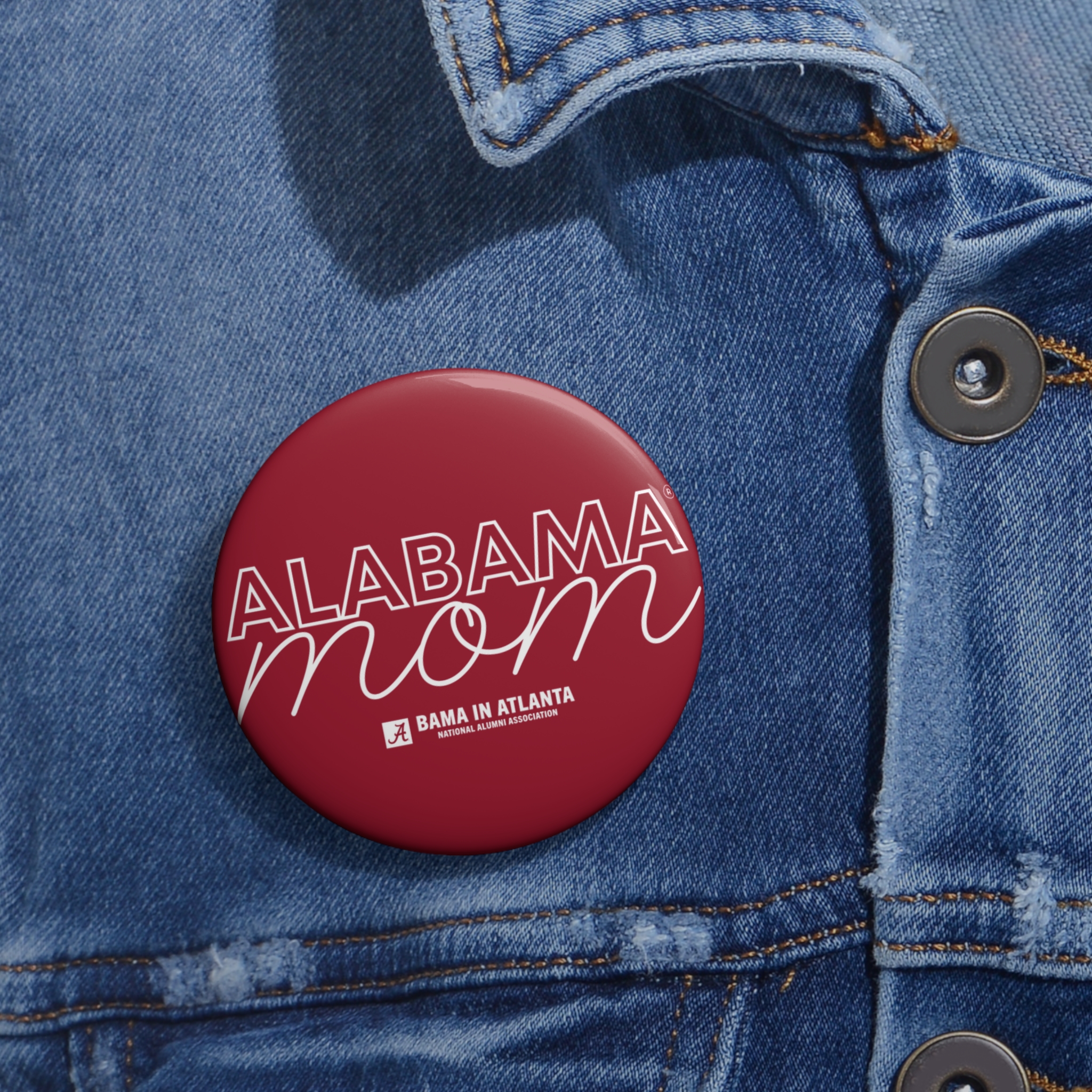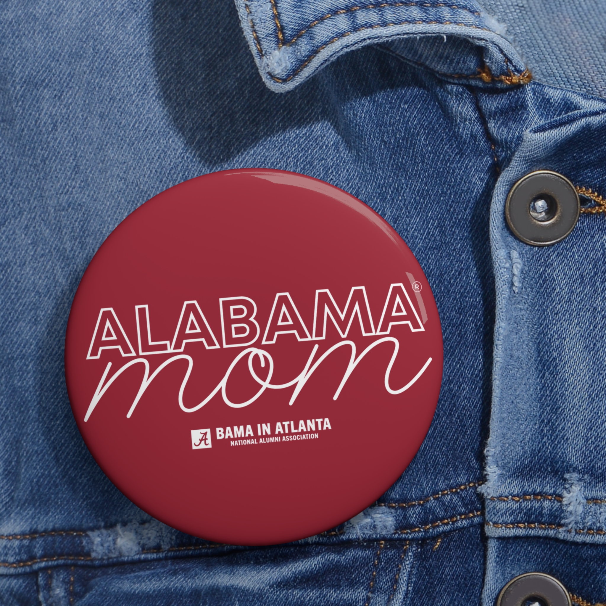 Proud Crimson Tide parent? Bama in Atlanta’s “Alabama Mom” button is the perfect Crimson Tide accessory for you. Ideal for gameday, college visits, and graduation events.