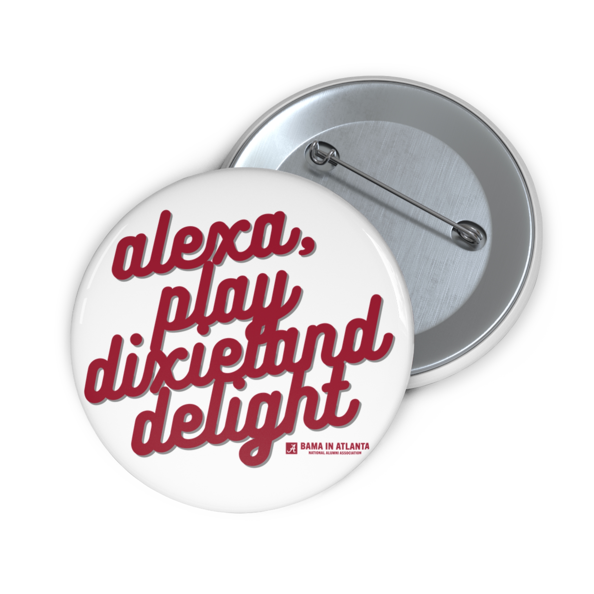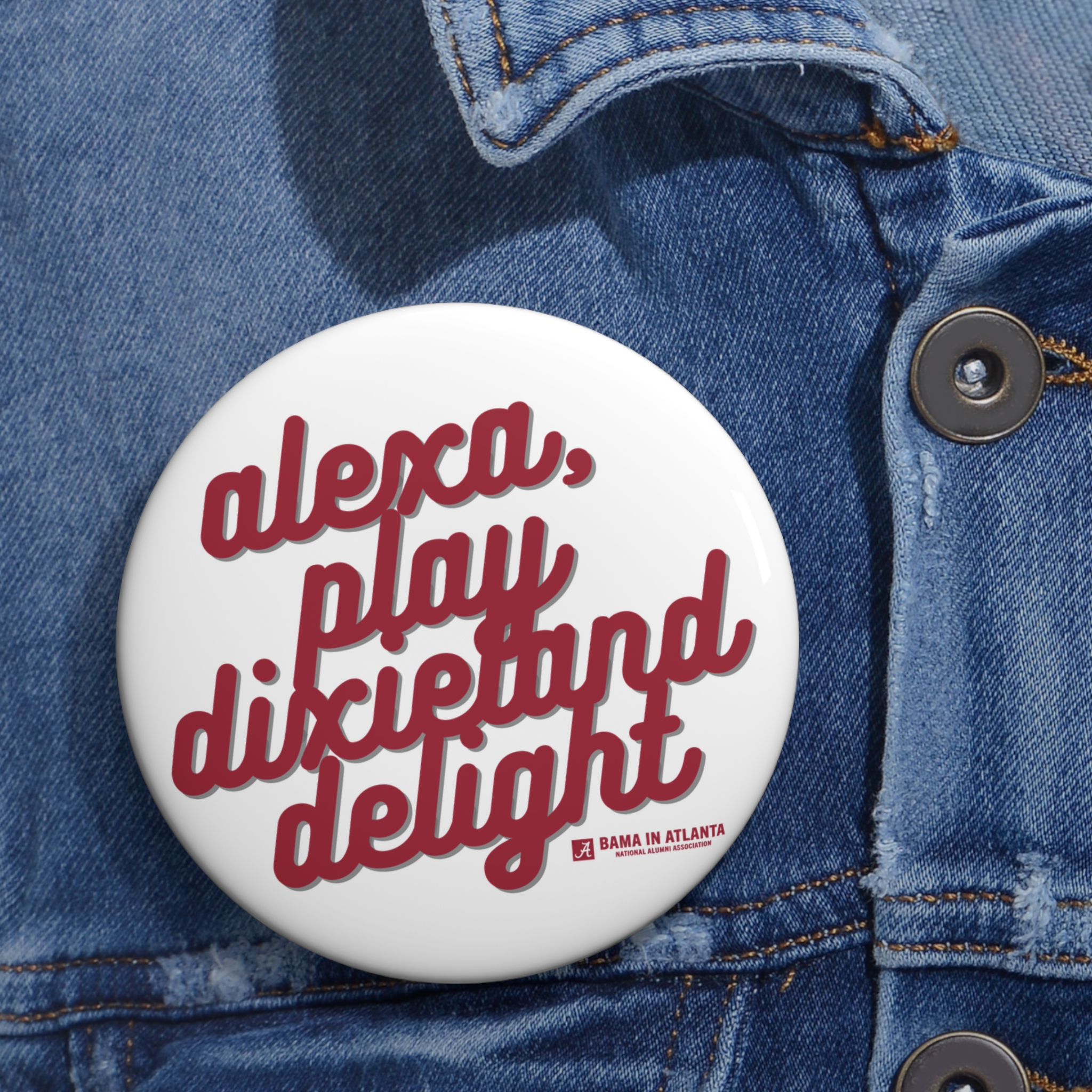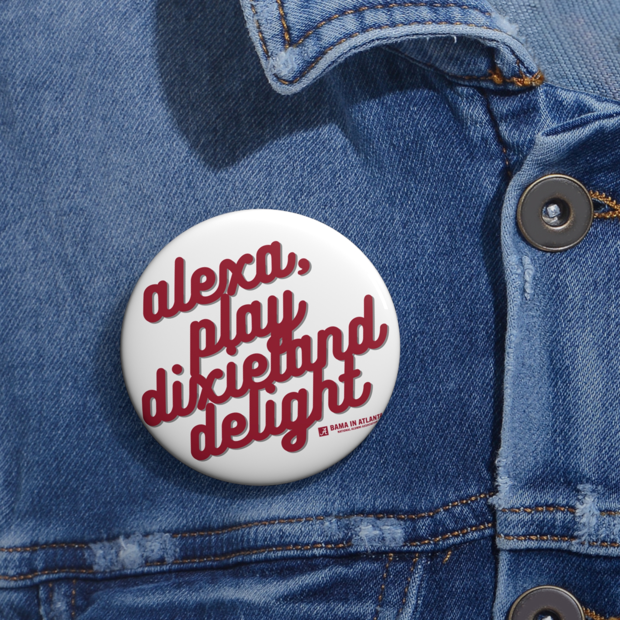 Our “Alexa, Play Dixieland Delight” button is a must-have accessory for Alabama football fans. Ideal for gameday outfits, tailgates, and Bryant-Denny Stadium vibes.