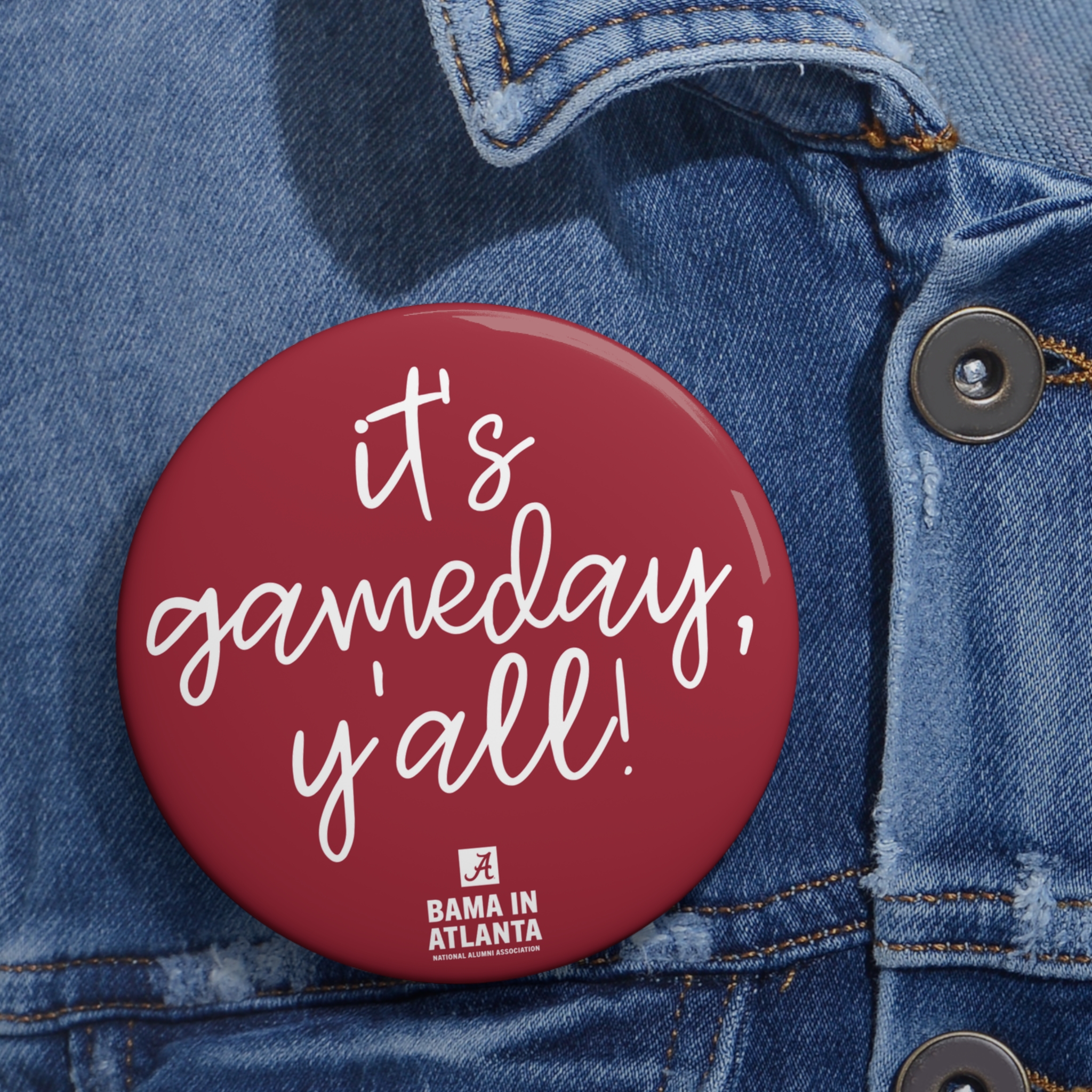Show your Crimson Tide pride right here in Atlanta with this fun game day button. Perfect for watch parties, tailgates, and Saturdays spent cheering on Bama with your Bama in Atlanta crew. Pin it to your jacket, bag, or clear stadium tote and let everyone know it’s game day in the ATL.